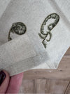 A beautifully finished natural linen tea towel featuring 3 unfurling ferns. Includes a hanging tag. Fully washable.